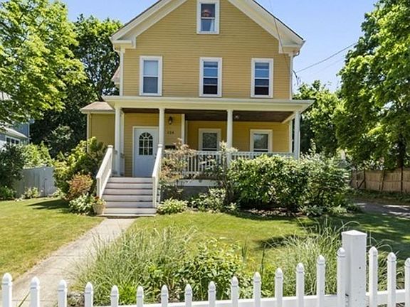 JUST LISTED. SHOWN BY APPOINTMENT. Set back from the street by a fenced garden, 124 Walnut Street offers its new owners an extensively updated classic 12 room colonial home that has been sensitively renovated by its current owners. Features include: first floor den with adjacent full bath (possible first floor bedroom suite), a flexible floor plan that works well with up to five bedrooms, living room with fireplace, recent bathrooms, heating and electric upgrades, mini-split air conditioning, spacious eat-in kitchen with sliders to the deck, finished attic, exterior improved with low maintenance Hardie Board clapboard, PVC facia boards, architectural roof shingles & energy efficient windows. A 2 car garage completes this offering. 124 Walnut Street is within a short drive to the commuter rail, Legacy Place, Dedham Square, Dedham Mall & all major routes. Gloves & masks that cover nose & mouth must be worn by all visitors. Offers reviewed as received & responded to within 24 hours.