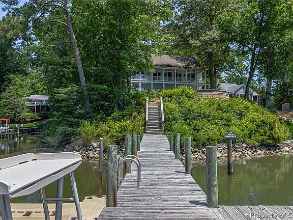 Discover this classic Southern-Living style waterfront home on the serene shores of Carters Creek, offering a blend of luxurious comfort & elegant lifestyle. Fabulous boating awaits with 5' MLW at your private pier allowing easy access to fantastic fishing, waterfront dining, or catching up with friends on creek cruises. Also makes a perfect area for kayaking with a lovely protected cove! Additional outdoor features offer a waterfront Fire Pit/Patio area, outdoor shower, no flood zone, expansive covered porches & a covered balcony all overlooking the water. Interior features heart pine floors, 10' ceilings, multiple fireplaces, & ample glass for fabulous long views of the creek. You will love this floor plan! This bright & spacious home is perfect for first floor living with amenities of 5 bedrooms & a large bonus room to accommodate all your family & guests. Explore the nearby quaint towns with local shops, dining, & community events that make this serene atmosphere a perfect place to call home. Only an hour to Richmond/Williamsburg or two hours to Charlottesville/VA Beach/Northern Virginia, make this your get away or your permanent oasis!