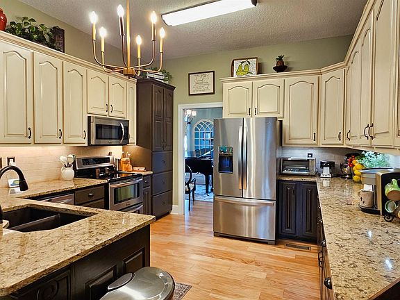 3.10 acres of beautifully landscaped property with your dream home. The home features an attached two-car garage, a detached two-car garage (29x25), and a large 34x48 workshop with drive-through garage doors at the front and back. Step inside your 3-bed, 3.5-bath home with an open floor plan 20x19 family room has pellet fireplace. Enjoy the sunroom & 12x20 screened-in back porch, perfect for relaxing & entertaining. Discover 2 separate baths in your spacious owner's suite with a large closet. The home office provides a quiet space to work or study. The chef's kitchen boasts Cambria Quartz countertops and modern appliances. 32 miles to Huntsville, 24 miles from Guntersville. Home Sweet Home.