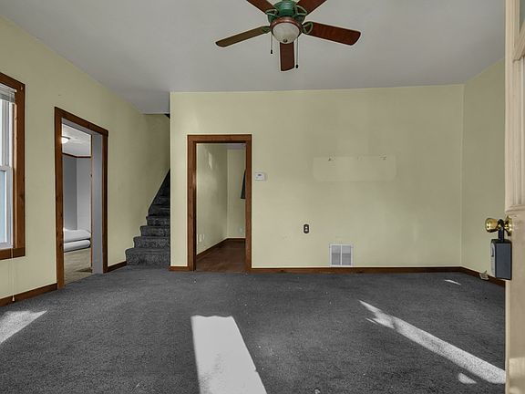 Dreaming of homeownership but on a budget? This charming property is packed with potential and features large bedrooms that provide plenty of space to relax and make your own. The unique layout includes a versatile office or playroom on the first floor, leading to a bathroom with a convenient tub/shower combo. Step outside to a fully fenced yard offering privacy and a secure spot for your fur babies to play, your green thumb to shine, or simply relaxing with a cold drink—cozy yet brimming with possibilities. A carriage-style garage adds extra storage or workspace opportunities with some TLC, and the full basement provides ample room for all your storage needs. Featuring electric utilities and a gas furnace, this home is ready for your personal touch. Priced at $79,900, it's a fantastic opportunity for first-time buyers, DIY enthusiasts, or anyone looking for a smart investment. Property is sold as is.
