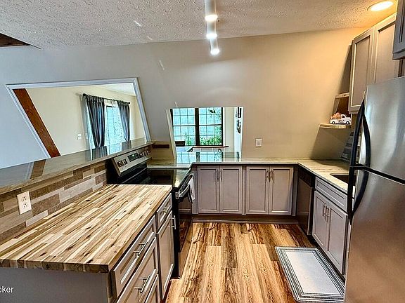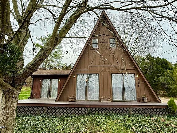 This newly refurbished A-frame home with exceptional views of Doe Valley Lake sits on a .29 acre lot. This charming 2 bedroom, 1 bath property features an updated interior with new vinyl plank, tile, and carpet flooring and new light fixtures throughout. The kitchen boasts updated stainless steel appliances, custom quartzite/butcher block counter combo, and soft close Shaker style cabinets. The updated bathroom includes a new vanity, toilet, and washer and dryer. It is conveniently located near the lake's beach, picnic area, and pavilion.