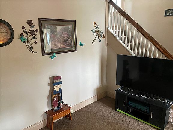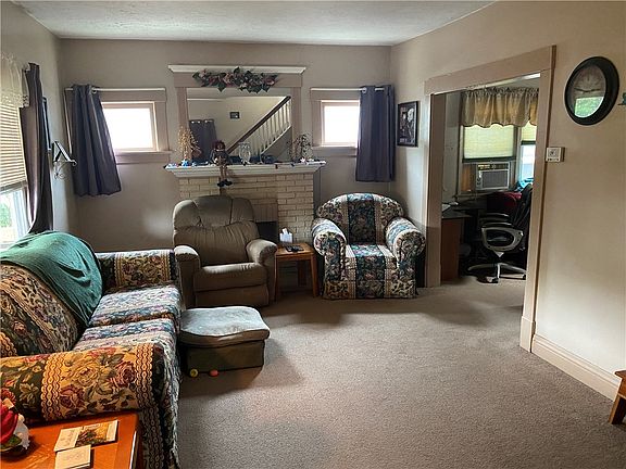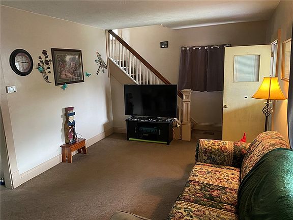 Welcome Home to 124 Woodrow Ct. This well maintained and cared for home hosts a large eat-in kitchen, formal dining room and living room with 9ft high ceilings on the main floor. The upper level includes the master bedroom, 2nd bedroom and spacious bathroom all with 8ft high ceilings. The basement has a double utility sink, electric washer/dryer hook-up and a newer hot water tank (2018). Outside find a block construction 2 car detached garage with a shared driveway. Nice back yard with plenty of space to have family outings and a 21x7 open front porch!