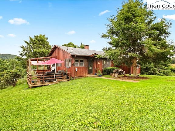 It is a gorgeous mountain setting with 4 acres of beautiful pasture! This is a homestead! There is an upper barn for shelter with a wooded area, a shed for feed, a chicken coop, and a chicken run. A mountain spring is piped into 2 smaller ponds for water for your small livestock. The homestead has mountain goats, sheep, chickens, ducks, and guineas. This is all added to a biodiverse environment that is in tune with nature. A greenhouse for early seed starting. A huge organic vegetable garden has many established veggies, like asparagus, rhubarb, etc. Practicing organic self-sufficiency for the last five years—no pesticides. Your amazing outdoor space is reflected in the farmhouse for comfortable main-level living—great dining space with access to the picturesque sunroom. The Great room has charming built-ins, a wood-burning fireplace & gorgeous original hardwood floors. A spacious kitchen is ready for prep work and entertaining with an eat-in dining area. The heart of the home is the kitchen, and combined with family and friends, there is sufficient outdoor space from the serene front porch for a morning coffee to the peaceful sunroom and the deck for a wonderful cookout! The firepit area outside is just right for smores and star gazing! Several fruit trees includes an old mountain apple, grapevine, fig, and peach trees. The lower level has a spacious flex space with a 1/2 bath. Stained concrete floors, recessed lighting & natural stone wall. This space could even be transformed into a basement apartment for passive income. The garage is a large tandem for 2 vehicles. 2016 Energy Efficient Propane Furnace, Hand brushed Australian Timber Oil on the exterior. If you're not into using the pasture, the local farmers will maintain the pasture by mowing it 2x year. Come and enjoy the best of what the mountains and nature offer! At this price property is "AS IS". The seller is a broker.