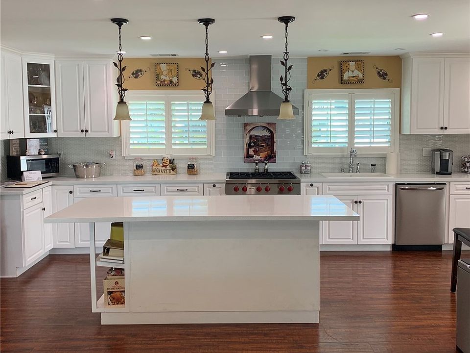 - RoomKitchenFeatures: Kitchen Island, Kitchen Open to Family Room, Remodeled Kitchen, Quartz Counters, Self-closing cabinet doors, Self-closing drawers