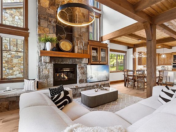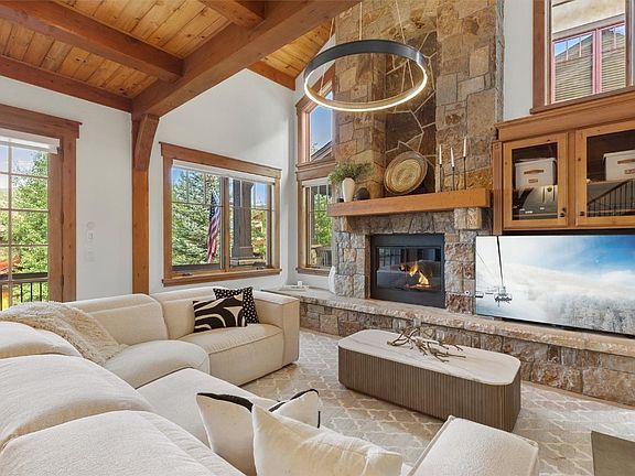 This exceptional residence in Stonewood at Eagleridge offers a rare opportunity to own in one of Steamboat’s premier mountain communities, with only one listing on the market. Beautifully updated and meticulously maintained, this 4-bedroom, 3-bathroom residence offers 2,870 square feet of thoughtfully designed living space. Ideal for full-time living or short-term rental, the home features an open-concept layout with vaulted ceilings and abundant natural light. The heart of the living area is a stunning floor-to-ceiling stone gas-log fireplace, an inviting focal point perfect for cozy evenings and mountain ambiance. The chef’s kitchen boasts premium appliances, stylish surfaces with waterfall countertops, ample Alder cabinetry, and designer lighting that elevates everyday living and entertaining alike. Beautiful White Oak floors grace the main living level for an elevated mountain touch. Each bedroom offers privacy and comfort, while the bathrooms are appointed with modern fixtures and upscale finishes. A private deck allows for peaceful outdoor relaxation, and the attached two-car garage provides added convenience and storage. Additional highlights include a lower-level bonus bunk room space for extra accommodations, plus a spacious separate laundry area and abundant closet storage throughout. This newly updated home is ready and waiting for its new owner. Enjoy easy access to the gondola, base area, shopping, dining, trails, and year-round events, all just a short walk away. With its prime location, seasonal shuttle service and exceptional features, 1240 Eagle Glen Drive #12 is a standout opportunity in Steamboat Springs for lifestyle buyers and investors alike.