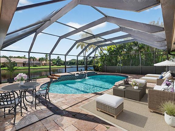 Set at the edge of a cul-de-sac in the boutique neighborhood of Sunset Springs, this stunning 4Bd, 2.5BA LAKEFRONT home is newly remodeled throughout! The expansive foyer with formal areas leads to a glass-enclosed air-conditioned SUNROOM that extends the living area to 2741 sf, providing an amazing indoor/outdoor entertainment area with new IMPACT sliding glass doors leading to the HEATED SALT POOL. Summer/Fall 2025 updates include all fully remodeled modern bathrooms, new paint in/out, new LED lighting & fixtures, a newer salt-water pool system w/ remote-controlled heater, new AC, smart-control sprinkler system, new washer, new tile on exterior walkway/entry, fresh landscaping. 10yr Roof, accordions, family room w/stone fireplace. Comm park, tennis, top schools, walkable to Town Center! n