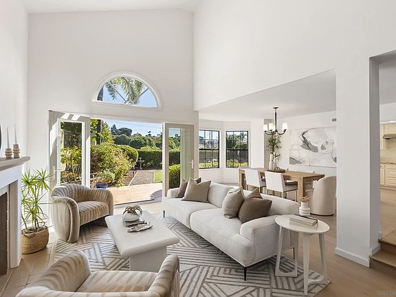 Welcome to 1240 Ladera Linda. Tucked away in a private, serene Solana Beach enclave, this home gives you easy access to top-rated schools, shopping, restaurants, beaches, golf courses, parks, the Del Mar racetrack and more. As you step inside, you're greeted by soaring ceilings and a wide-open living room / dining room with views across your backyard to the Lomas Santa Fe country club golf course. New wide-plank, white oak, hardwood floors blanket the entire first level, exuding warmth and quality. The recently upgraded kitchen features brand new appliances and opens into a cozy family room that's perfect for movie nights and gatherings by the fireplace. A stunning spiral staircase leads to your expansive primary suite with vaulted ceilings and panoramic views. This private retreat features a large sitting area, dual closets and a fully renovated, spa-like bathroom with new dual vanities, Caesarstone quartz countertops, walk-in shower and soaking tub. The second floor includes two additional bedrooms, a guest bath and laundry room, all with fresh updates. The lush, peaceful backyard feels like an extension of the home, with ample space for entertaining and unwinding. Located in the gated community of Las Vistas, you'll enjoy access to two tennis courts (one pickleball) and a sparkling pool.