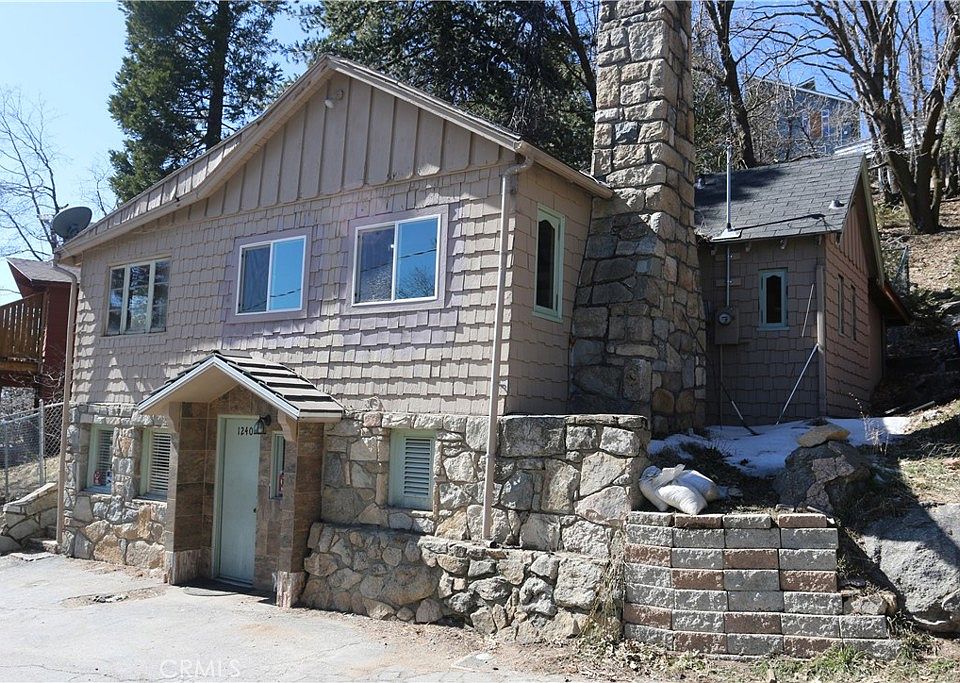Dont miss this Cute 3 Bedroom 2 Bath Home. Priced to Sell! Open Floor Plan. Vaulted Ceiling in Living Room Upstairs. Large Wood Burning Fireplace in Living Area. New Central Heating System for those Chilly Nights. Knotty Pine Walls. Large Eat in Kitchen. Wood Laminate Flooring. Master Suite Upstairs. Another Bedroom and Bathroom Downstairs. Plus Separate Laundry Room. Outside Storage Shed and Storage space Downstairs. Fenced yard and Covered Patio for entertaining. Clear Termite Report. Garage converted to living area downstairs! Located 1 Mile from Rim of the World High School. Skypark Bike Park 3 Miles. 1.5 Miles to Lake Arrowhead. Services, Shopping, Restaurants and Night Life Close By. Skiing/ Boarding at Snow Valley 15 Minutes away. Only 20 Minute drive up the Mountain. Conveniently Close to Freeways for an Easy down the hill Commute. Subject to Cancellation of previous escrow.