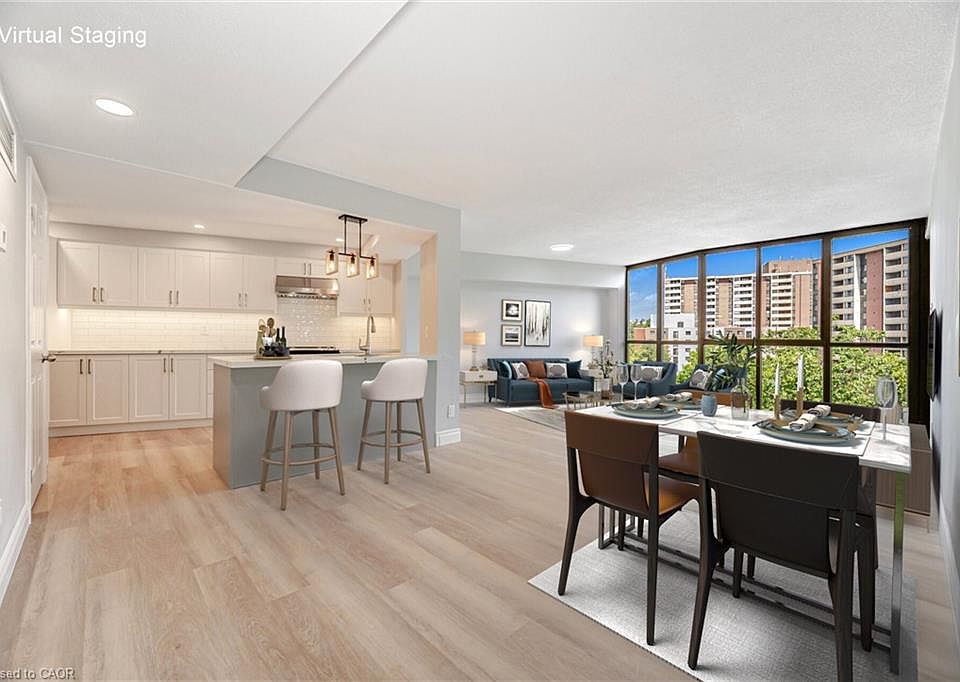 Welcome to Sovereign II, where luxury meets lifestyle in this completely renovated 2-bedroom plus solarium/office, offering 1,207 sq. ft. of stylish, open-concept living. Thoughtfully redesigned, this bright and spacious unit features northwest-facing windows that fill the space with natural light and provide beautiful sunset views. The modern kitchen is perfect for entertaining, showcasing quartz countertops, a breakfast bar, and brand-new stainless steel appliances. Additional features include under mount lighting and sink, self-closing drawers, a large pantry with built-in microwave, and pot lights. The open layout seamlessly connects the kitchen to the living and dining areas, creating a warm and inviting atmosphere. The expansive primary bedroom is a true retreat, offering a walk-in closet with and a stunning 5-piece ensuite with double sinks, a soaker tub and shower. The second bedroom is generously sized, and the enclosed solarium offers the perfect space for a home office. Residents enjoy a full range of amenities, including an indoor pool (under construction), fully equipped gym, sauna, party room, and beautifully landscaped outdoor seating areas. The unit comes with one exclusive underground parking space and a private storage locker. Maintenance fees cover internet and cable, water, etc. Ideally located just steps to Oakville Place Mall, Sheridan College, parks, public transit and with easy access to major highways and nature trails. This is more than just a home it's a turnkey lifestyle opportunity in one of Oakville's most convenient and well-maintained communities.
