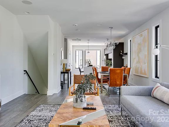 Experience modern luxury living in this stunning end-unit four-story townhome showcasing Charlotte’s skyline and stadium views from a private rooftop deck. Designed with high-end finishes, Sonos surround sound throughout, and sun-filled interiors, this home combines comfort, style, and convenience. Centrally located and walkable to Truist Field, Bank of America Stadium, and local dining The open-concept layout features three spacious bedrooms and four and a half baths, offering both functionality and sophistication. The living area flows seamlessly into an elegant dining space and a fully equipped kitchen perfect for entertaining. The primary suite includes a luxurious bath with a walk-in shower, double vanity, and ample closet space. The tandem garage offers an EV charger. The fourth-floor rooftop deck provides the ultimate retreat with panoramic skyline views. This property is being sold fully furnished and currently operates as a successful short-term rental with average monthly income of $8,500/mo, making it a prime investment opportunity. Financials are available upon request.