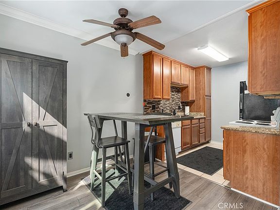 Step into a bright and open living space featuring laminate flooring, elegant crown molding, and abundant natural light. The kitchen boasts sleek granite countertops with a matching backsplash, providing both functionality and modern appeal.