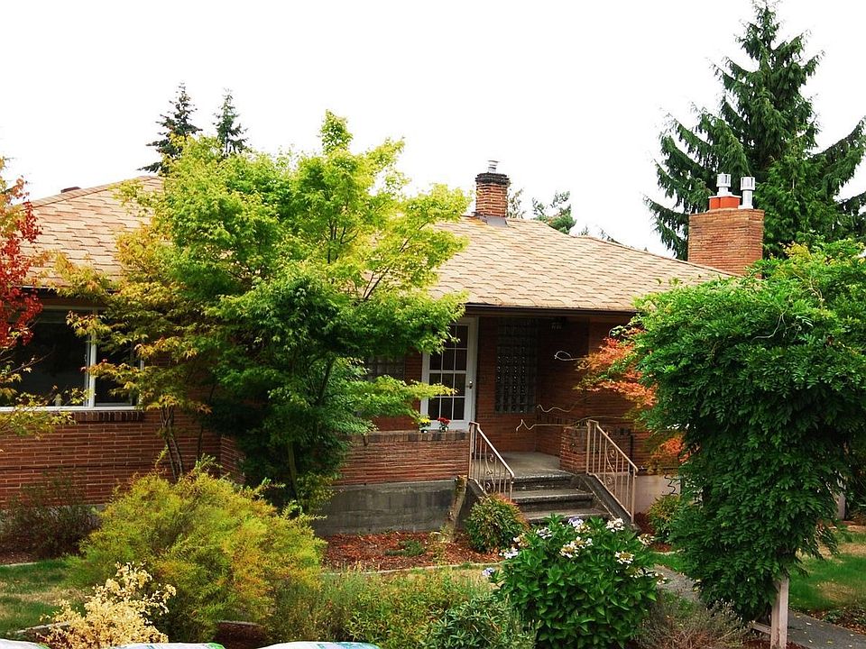 Beautiful brick mid-century! This home sits on a huge park-like 10,222 sq ft lot. Great open floor plan w/large rooms & natural light. Updated kitchen w/ stainless steel appliances & custom tile. Special features include 2 fireplaces, hardwood floors, coved ceilings & period details. Private office off deck. Finished daylight basement. 2 car detached garage w/alley access. Large, fenced yard is landscaped w/ 2 patios. Located in the heart of desirable Maple Leaf neighborhood.