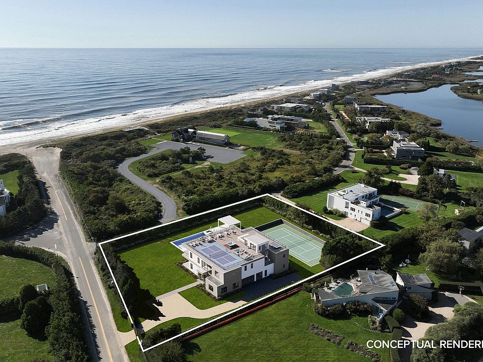 Nestled on a 1.4 acre+/- lot, this modern pre-completion offering encompasses a 9,990 SF+/- main residence with 8 bedrooms, 9 full and 2 half bathrooms, a 430 SF+/- pool pavilion, attached 3-car garage, elevator servicing all levels, and a rooftop viewing deck with expansive ocean views. Situated South of the Highway, just one house off the ocean, this captivating estate is ideally located just 730'+/- from Ocean Road Beach. The nearby hamlets of Bridgehampton and Water Mill bring you the Hamptons' finest shopping, dining, and world-renowned golf courses, all within close reach. The 4,971 SF+/- first level opens up to an impressive double-height entry foyer. Bright open-concept living spaces feature high ceilings, stone flooring, a double-sided gas fireplace, and direct patio access. The eat-in kitchen has high-end appliances, custom cabinetry, a breakfast area, center island, plus an adjacent chef's kitchen and pantry while the formal dining room is located off the great room. The first level primary en-suite bedroom features a large walk-in closet, patio access, and a bathroom with radiant heated floors, dual vanities, water closet, steam shower, soaking tub, and patio access. A gym with full bathroom and sauna, office with full bathroom, laundry room, linen closet, powder room, and double-height mudroom complete the first level. Two floating staircases with glass railings ascend to the 5,019 SF+/- second level. The serene primary en-suite bedroom boasts a spacious walk-in closet and access to a 1,097 SF+/- shared poolside covered terrace with mahogany decking and metal and glass railings. A spa-like primary bathroom has dual vanities, a water closet, steam shower, soaking tub, and radiant heated flooring. Six additional en-suite bedrooms each contain a walk-in closet, four of which also provide direct access to the shared poolside covered terrace. Completing the second level are 2 staff en-suite bedrooms, a movie theater with stadium seating, a laundry room, and extra linen closets. Revel in a heated gunite pool and spa accompanied by a 430 SF+/- pool pavilion, a sunken tennis court, and ample lawn space. Rejuvenate atop the 2,748 SF+/- rooftop viewing deck with its own spa, dining space, bar, and ocean views for miles. Construction of 1240 Ocean Road is underway with an award-winning team - Farrell Companies, Will Minnear Architect, and Hamptons Yards - overseeing its completion. The home is expected to be fully finished by late summer 2024.