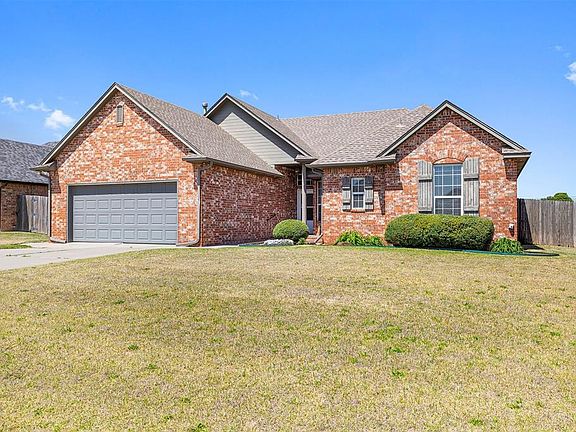 This beautifully maintained 4-bedroom, 2-bath home offers comfort, functionality, and style-all in a highly convenient location. With 9-foot ceilings throughout, the home feels open and inviting from the moment you step inside. New hardwood floors run throughout the main living areas, while the bedrooms feature soft, comfortable carpeting for a cozy feel. The kitchen features updated countertops, a modern tile backsplash, a brand new sink, and a new dishwasher - making it practical for every day living. The spacious living room includes built-in shelving surrounding a cozy fireplace, perfect for movie nights or displaying your favorite finds. The flexible floor plan includes a fourth bedroom that can easily double as a home office. The primary bedroom is a true retreat, complete with a private patio entrance and a large en suite bath featuring his and her sinks, a soaking tub, walk-in shower, and a unique roundabout closet. Additional highlights include an outdoor sprinkler system, a new water heater, and an underground storm shelter located in the garage, offering extra peace of mind. This move-in-ready home blends small-town charm with thoughtful updates. Schedule your tour today!