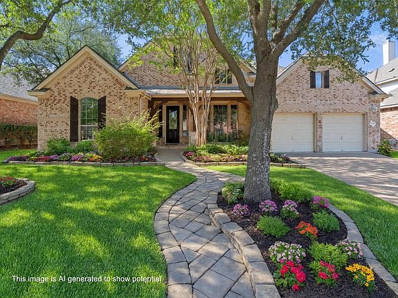 A rare opportunity for value-driven buyers seeking space, flexibility, and upside potential, this property invites customization and the chance to realize its full potential. Priced to reflect a buyer's potential updates, such as new flooring or refreshed landscaping, it's one of the best opportunities in its class. The home boasts timeless brick-and-beam architecture, luxury wood flooring, and an open, light-filled floor plan perfect for everyday living and entertaining. The floor plan includes four bedrooms plus a dedicated office. The kitchen features timeless cabinetry, a generous center island, abundant storage, and is ideal for both casual breakfasts and evening entertaining. Two substantial dining areas extend the home's hosting potential. The oversized primary suite offers privacy and comfort, complete with a spacious jacuzzi tub, stand-up shower, separate vanities, and two large closets. Upstairs, a cozy apartment-like space features a bedroom, bathroom, and generously sized flex/living space. Outdoors, a covered patio extends the living space and invites year-round enjoyment, complemented by a ceiling fan for warmer days. A three-car garage (with tandem parking for two) provides additional storage. Recent upgrades include two newer HVAC units (2 and 3 years old), a tankless water heater, and a roof replacement in 2021, adding peace of mind and efficiency. Lake Forest is a mature, tree-lined neighborhood known for its calm streets, well-kept homes, and vibrant neighborhood life, with resort-style amenities including a pool, clubhouse, tennis courts, parks, and recreation center. A top-rated RRISD elementary school is within the neighborhood. Conveniently located near a grocery store, local favorites like Palermo Italian Restaurant and Kalahari Resort, and with effortless access to Mopac and I-35, downtown Austin is comfortably within reach.