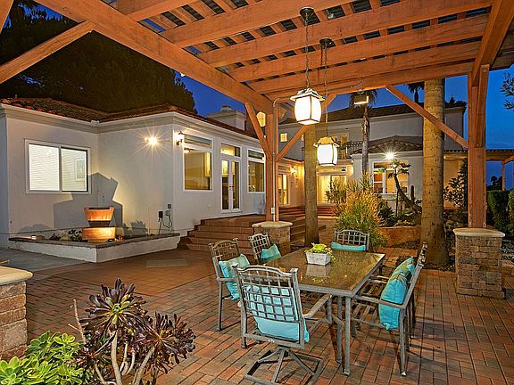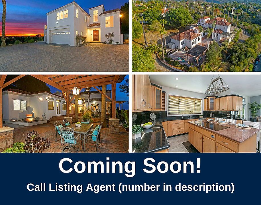 A beautiful modern mediterranean style villa sitting atop a 1.05 acre lot. A long meandering driveway lined with palms and gorgeous drought tolerant native plants, allows for a very private setting. A west facing backyard and tons of large windows allows for views from all rooms. The first level master suite boasts A fireplace, double walk in closets and double shower and french doors opening on to the spacious patio. The Large 1.05 acre lot has low maintenance landscaping, panoramic views of valley and mountains with breathtaking sunsets. Entertainers dream! The large kitchen has granite counter tops and storage galore. Kraft-Maid cabinets, stainless steel appliances, Oven and Convection Microwave combo. 3 large additional bedrooms upstairs. This 4 bed, 3.5 bath, large living room with wet bar in the middle of highly coveted Olivenhain.