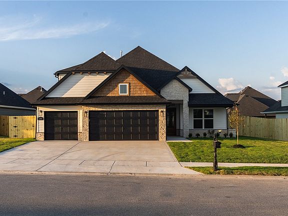 Bentonville’s West High School Campus, as well as nearby shopping, dining, entertainment, and outdoor recreation. This prime location offers the perfect blend of convenience and tranquility, allowing you to stay close to everything. The Jennifer plan a spacious and versatile two-story home offering 2,696 sq ft of thoughtfully designed living space. This 4-bedroom, 3.5-bathroom layout is ideal for both comfort and functionality, featuring the primary suite and a secondary bedroom on the main floor. Upstairs, two additional bedrooms share a full bathroom, providing a great setup. The open-concept kitchen and living area create a seamless flow for everyday living and entertaining, complemented by a separate breakfast nook for casual dining. Additional highlights include a three-car garage and a covered back patio with a cozy outdoor fireplace, making it the perfect retreat for relaxing or entertaining year-round.