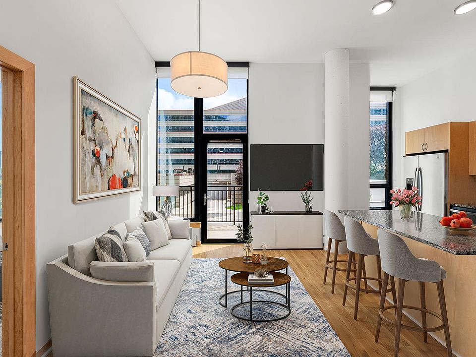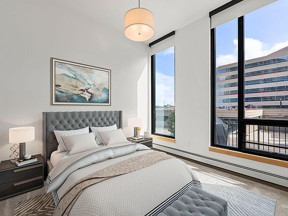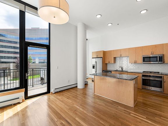 Legacy 2BR with great finishes, 2 parking stalls and most utilities included with rent now available steps from Gold Medal Park! In the kitchen you'll find granite counter tops, gas oven, stainless steel appliances, tiled backsplash and island with space for bar stools. Unit features hardwood in the main area, high ceilings, towering windows, and large balcony with natural gas grill. Legacy Lofts has unmatched amenities and services: Community room with banquet kitchen; community patio with grilling stations, fire pits & lawns; outdoor pool and jacuzzi; cardio center with studio; weight room; playground; game room with golf simulator; 24/7 front desk staff; guest parking garage; and more! Included with rent: 2 indoor heated parking stalls, 1 storage locker, water/sewer/trash, gas, heat, A/C, basic cable & internet. Tenant responsible for electricity. Application fee: $78 per adult occupant, Admin Fee: $150, HOA Moving fee: $700, HOA occupancy fee: $175; Security Deposit is One Month's rent.