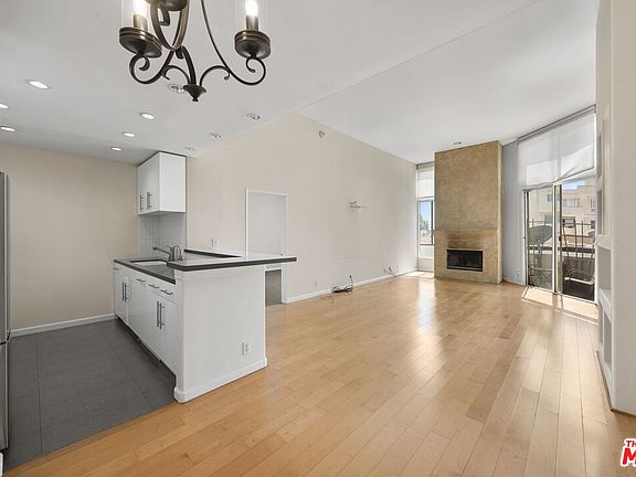 Penthouse living in Pico-Robertson! Step into a rare 1350 sf penthouse residence designed for comfort, style and ease. Located in a quiet, well kept building blocks from Beverly Hills, this top floor corner unit combines spacious luxury with unmatched convenience. Soaring 12 ft loft ceilings with dramatic windows for all day natural light. Expansive open plan living room with gas fireplace. Two balconies for indoor-outdoor living. Premium hardwood floors and stain resistant bedroom carpeting. Home theater projector and built-in screen for cinematic nights in.