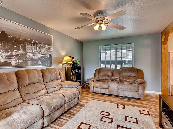 Newly remodeled kitchen, beautiful new downstairs flooring.Central heat and air, home sits in a quiet cul-de-sac and has an extra large back yard which backs to hazelnut orchard. Sprinkler system and area for a garden. Great family home!!!!