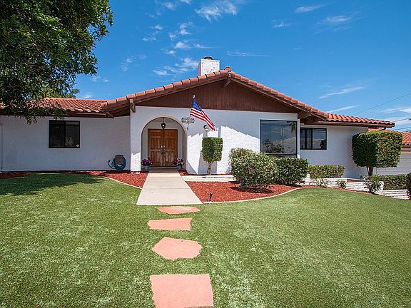 Kathy Robbins Re/Max United 760 845-4700 .Single story home at end of quiet cul-de-sac! This is the home you have been waiting for>>>Large country kitchen (fridge conveys)...new granite counter-tops, new laminate flooring and carpeting. Living room has large open windows with fireplace and formal dining room. Home features roller shades, built-in speakers, night lights,and smart devices for HVAC. Indoor laundry with newer washer and Dryer that will convey. 3 large bedrooms with ceiling fans and overhead lighting. Both bathrooms have dual sinks and plenty of storage. Master features a walk-in closet and access to the backyard. Nice size lot (10,000 sf) fully fenced and large patio for entertaining. The garage is over sized ( HUGE) and can house up to 3 small cars with built-in storage and new garage door with opener. Drought tolerant artificial turf in front yard. No mello Roos or HOA. Located close to shopping, freeways and local schools.