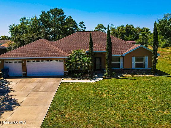 This beautiful home is nestled away on a 1-acre corner lot. The home is situated on a half-acre on Arslan Lane. There is an additional/adjacent half acre with an 18 x 20 metal building that is accessible from Gulliver Road. The rear portion of the site can be separated and sold or used for recreation, storage, etc. This youthful, ample size home was constructed in 2014 and features a 4-bedroom, 2-bathroom, split floorplan with a 3-car garage. The front elevation is accented by prominent columns and stacked stone. As you enter the home you will immediately notice the abundance of natural light, the high-volume ceilings and the open concept floor plan. The eat-in kitchen features wood cabinets and upgraded stainless steel appliances. The master bathroom features double sinks with a garden tub, walk-in closet and a separate stall shower. The guest bathroom features a tub/shower combination. The laundry room is ample is size and features a slop sink. The kitchen and bathrooms feature ceramic tile. The dining room and a small portion of the great room feature a wood laminate and the bedrooms offer carpeting. Other interior refinements include bullnose/rounded corners, decorative columns and archways, decorative soffit shelving, decorator lighting fixtures and ceiling fans. Only minutes from the Suncoast Parkway and other highly sought-after recreational amenities including Veterans Memorial Park, Anderson Snow Park, Suncoast Bike Trail and more. Schedule your preview today!