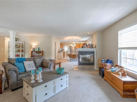 Beautiful 3-bedroom condo has a great open floor plan, neutral colors, 2 full bathrooms. See-thru fireplace (gas logs) between the living and dining areas. Laundry room is off the kitchen. All appliances stay. Screened-in covered deck in back runs the length of the unit with access from the kitchen or the 2nd bedroom. 2-car garage. Super convenient location. One-level living, and only 2 steps in at the front door and in from the garage to the home.