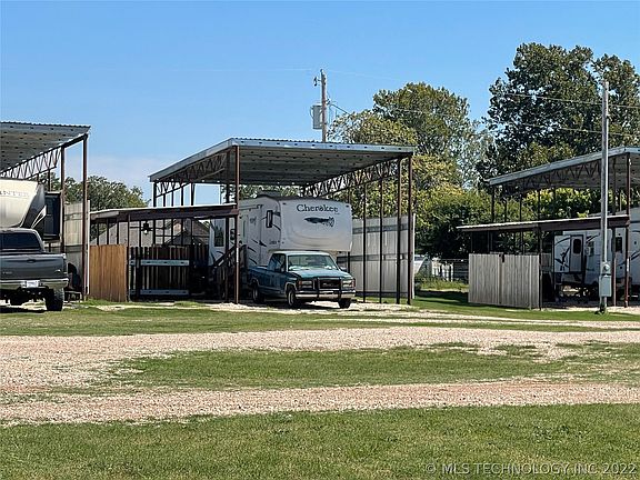 This is an amazing opportunity for someone that wants a great investment for return of the dollar. 13 covered spaces with carport, each own electric meter and each has own address rented at $400 per month, three homes each with carport, outdoor area , water meter, electric meter . 2bed 2 bath mobile home rented for $800, 2 bed 2 bath for $850 and 3 bed 2 bath $950. Nice fenced area with river gravel driveway. Extremely well maintained. Wash house with 3 coin operated machines, plus 3/4 bath. Close to I 35 and Winstar. Present rentors are long term . Property is in A1 condition . Just purchase and collect the money each month. School bus route.
