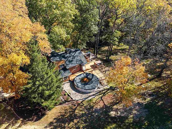 Escape to the serenity of this authentic log home, where rustic charm meets modern luxury. Nestled amidst 3.63 acres this retreat offers the perfect blend of tranquility and privacy. Scenic views are enjoyed from the covered front entrance, Expansive deck with pergola, hot tub, and access to the pool. Enter into the two story great room with a brick wood burning fireplace, second floor loft and stairway. Custom steam pipe railing leads to the second level with a spacious and comfy multi-use loft as well as a half bathroom and 2 additional bedrooms with bunk beds. Character is built in with hardwood flooring, soaking tub, hand milled stair treads and timber stringer milled from the property. Fully-equipped kitchen with stainless steel appliances, electric induction convection oven, moveable island, additional brick stove inset, and custom solid wood dovetail Diamond brand cabinetry and pantry. The finished walk out lower level has an open multi-purpose recreation room or bedroom with a full bathroom with walk in tiled shower and laundry room. Enjoy a beautiful red Amish buit barn 20' x30' with a concrete floor, electricity, roll up garage door, and stairs to the second floor loft. Additional features include 2 storage sheds, Stone City limestone retaining walls, stain glass windows inserts. 2025 New Septic System.
