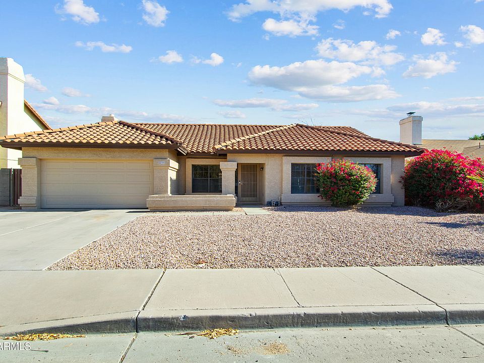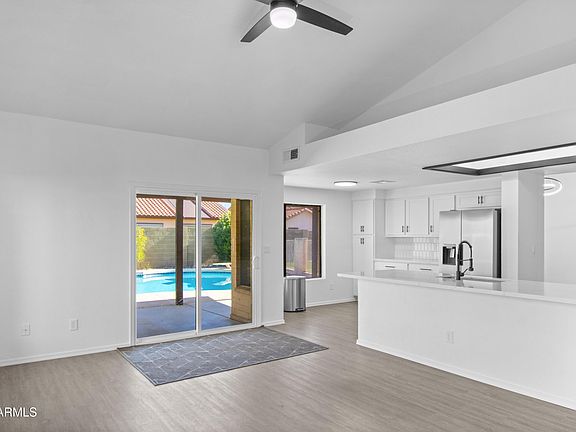 Step into this stunningly renovated home, where modern upgrades meet timeless charm. Fully remodeled in 2022, this property boasts new flooring, upgraded kitchen with sleek quartz countertops, and refreshed bathrooms. The ranch-style exterior welcomes you into an interior featuring a wet bar, a dedicated dining room, formal living space, vaulted ceilings, and a cozy fireplace. The main bedroom provides private backyard access, leading to a sparkling pool and ample outdoor space—ideal for hosting gatherings or enjoying sunsets. This home is just a 15-minute drive to Westgate Entertainment District, State Farm Stadium, and Arrowhead Mall. Close to grocery stores, dining options, and additional shopping centers, this home offers both luxury and accessibility. This home won't last long.