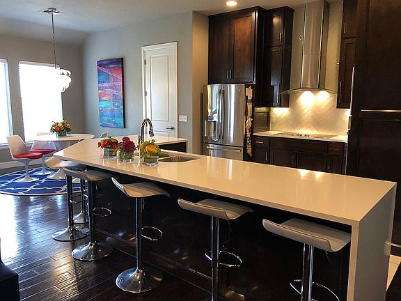 3 bedrooms, office/bedroom, large living room, large game room/recreation room equipped with lush quartz counters, additional oven, and refrigerator, great for entertainment, a large, true mud room, 600 sq ft patio with outdoor fireplace and outdoor kitchen with granite countertops, large backyard with view of the pond. Inside you will find the top of the line quartz pure white counter tops, as well as pure white porcelain tile in all bathrooms, kitchen and laundry. This house is one of a kind with upgrades everywhere you look. Walking into the master you will see plenty of room for your king size bed along with a sitting area. In the master bath, beautiful massive back lit mirror, as well as a built in vanity, and a tv over the bathtub, with a large pure glass walk in shower with dual heads, with a large walk in master closet. All bedrooms are oversized and all are equipped with walk in closets. Lots of custom wood work in storage space, it's very impressive, definitely a must see!