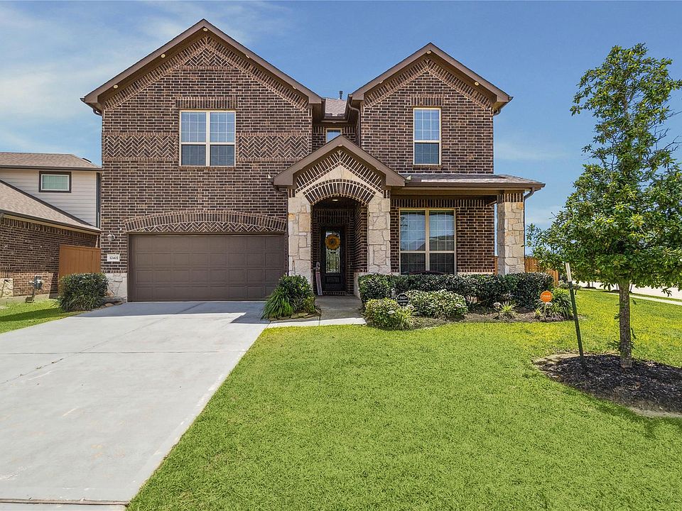 Welcome to 12402 Oakleaf Bend Drive — a stunning 5-bedroom, 4-bathroom home nestled on a corner lot within the coveted Balmoral, a lavish gated community within the heart of Humble, Texas. From the inviting stone and brick elevation to the open-concept layout downstairs, every detail of this home is crafted for modern living. The spacious kitchen features granite countertops, ample cabinetry, and a large island that flows seamlessly into the living and dining areas-perfect for entertaining. Upstairs, a massive game room and a dedicated media room provide endless opportunities for relaxation and fun. Each bedroom is generously sized, with the primary suite offering a peaceful retreat and spa-like ensuite bathroom. Enjoy outdoor living in the oversized backyard with a covered patio—ideal for barbecues, gardening, or just soaking up the Texas sun. With convenient access to Westlake Marketplace and Texas' first manmade crystalline lagoon, this home is sure to check all of your boxes!!!