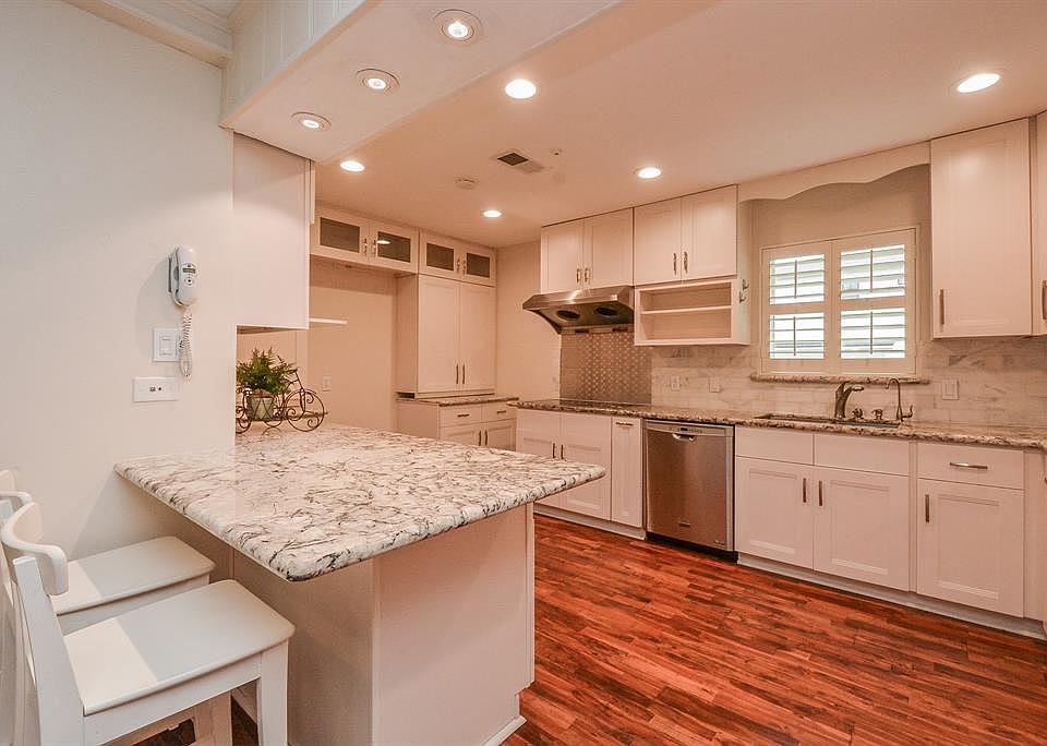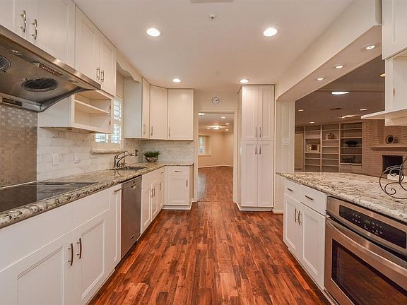 Beautifully updated one-story 3 bedroom home located in corner lot in sought-after Memorial Hollow. Wood flooring in both formals and family room with plantation shutters. Beautiful kitchen (updated in 2014) features granite counters, white paint custom cabinets, stainless steel appliances & induction heat cooktop. Spacious primary bedroom suite. Primary bath features frameless shower and tub installed in 2015 . All baths have granite counters. Custom built sunroom for entertaining friends and family. Fresh paint and carpet replaced in June 2021. Oversized corner lot with spacious front and backyard. Coated non-slip flooring in garage in June 2021. High and dry, never flooded. Great schools and convenient access to freeways and shopping.