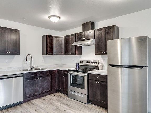 - Exterior features: All-new stainless steel appliances, Balcony, Brand-new energy efficient construction, Close to shopping and restaurants, Equal Housing Opportunity, Modern cabinetry, On-site parking, One-bedroom / one-bath & three-bedroom / two-bath floor plans, Separate dining area