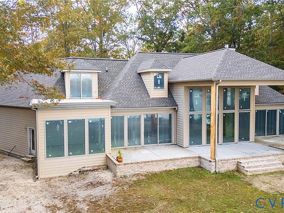 Experience waterfront living at its finest on the beautiful Piankatank River! Located just one hour from Richmond and 20 minutes from the Town of Gloucester, this stunning property spans nearly 6 acres with panoramic water views from every angle. The 4,518 sq. ft. main home features 4 bedrooms and 2.5 baths, each bedroom offering serene river vistas. The first-floor primary suite boasts a luxurious en suite bath and oversized walk-in closet, while an upstairs bonus room that opens to a private rooftop patio overlooking the river. Enjoy the expansive living room with wall-to-wall glass, a covered riverside porch, and an attached 2-car garage. A separate oversized 3-car garage includes dual mini-splits, a 4th RV/boat bay, and a 1,160 sq. ft. 1-bedroom 1.5 bath apartment above with its own entrance—ideal for guests or rental income. With room for a pool and all major systems—electrical, plumbing, and HVAC—already in place, this property is ready for your final finishing touches to create your dream riverfront retreat!