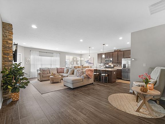 Magazine-Worthy Living Near the Illinois Border! Welcome to this stunning maintenance-free single-family home that blends elegance, comfort, and convenience--all on one level. Featuring 2 spacious bedrooms, a den with French doors perfect for a home office or guest space, and an open-concept layout that flows beautifully from room to room. Step into the sunroom, bathed in natural light, with sliding doors that lead to an extra-large patio--ideal for entertaining or relaxing. The architectural trim upgrade adds a refined touch throughout, while the remote-controlled fireplace and recessed lighting create cozy ambiance year-round. The modern kitchen boasts a center island for casual dining and prep space, and the main bedroom suite offers a luxurious tiled shower, double sinks, and a large walk-in closet. An attached garage provides convenience and security, and the home's location near the Illinois border makes commuting a breeze. Lawn care and snow removal are taken care of giving you more time to enjoy your weekends. This home truly looks like it stepped out of a magazine--come see it for yourself!