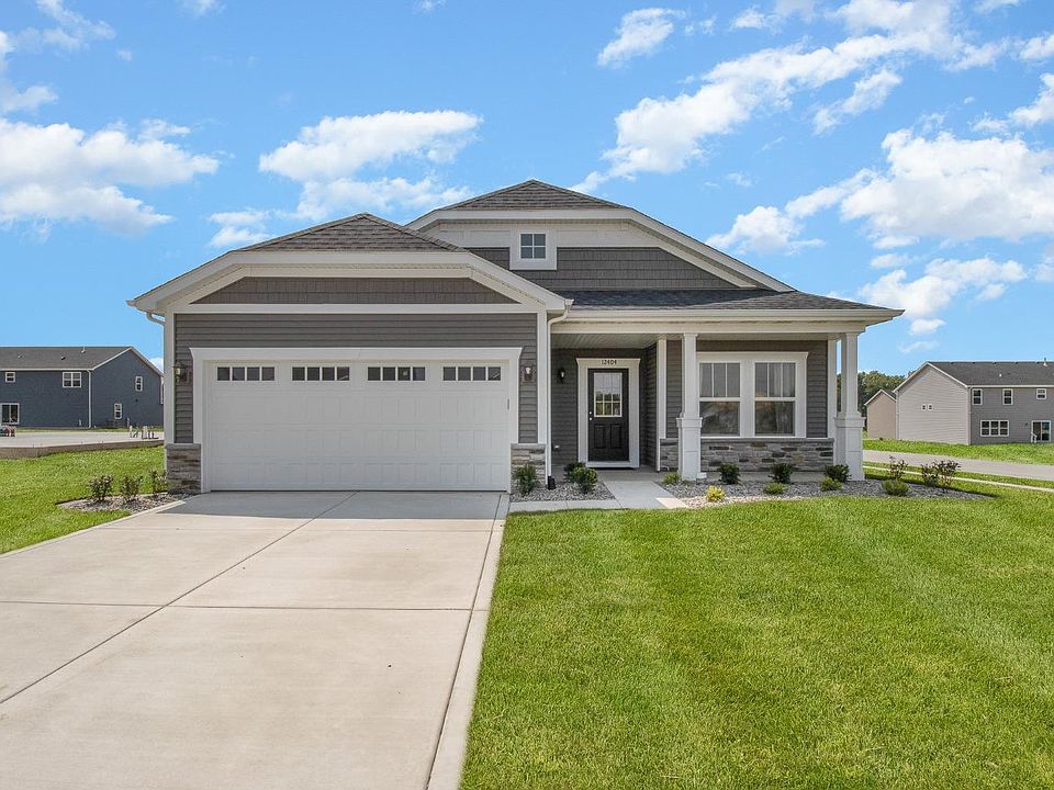 Ready Now! Maintenance free living in this beautiful, former model home. Situated on a corner homesite. This beautifully upgraded home offers wood laminate flooring throughout the main living area, providing ease of furniture placement in the open concept great room. Den is trimmed out with columns, finished off with beautiful architectural trim package. The sunroom backs up to the west providing a nice amount of natural light to enter. The well appointed kitchen offers 42 cabinets, granite countertops, stainless steel appliances and a nice sized island. This home is complete with washer & dryer as well. Many warranty items still apply!!