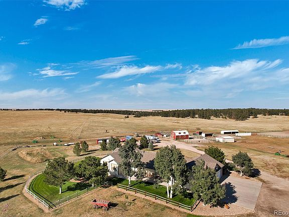 This is the Life! A well built custom ranch style home on 60 AM/L with mountain views, lush pastures, bordered by pine trees, ready for all your livestock. Only one mile form the town of Kiowa, the Fire department, the Elementary, Middle and High school. Under an hour to the Airport. The property is bordered by land that is in a conservatory and often full of wildlife. Frequently a playground for the deer and antelope. The entire property demonstrates Pride Of Ownership! The home is meticulously maintained, as is the Yard, the Fenced Pastures, the Barns, the Round Pen, & the Riding/Roping Arena. A Custom 4 bedroom, 3 Full Bathroom, Ranch with a Beautiful Gourmet Kitchen, 2 Pellet Stoves. A Dynamite 6 Car Heated, Insulated, Finished Garage, with lots of storage. The garage is pre-wired for a generator hook up. A nice size Laundry Room and Mud Room between the Kitchen and the garage. The Walkout basement is finished with a Family Room and a Guest Suite, and a 5th Nonconforming Bedroom or Office. There are also Secondary Washer and Dryer Hook ups and a Mechanical Room with Tons of Additional Storage. The entire home has Custom Hunter Douglas Window Treatments. The Pastures are Fenced and cross fenced with 4 tight strands of Barbed Wire. NO HOA, AG ZONED! Barns and Livestock Shelters and Much More. This is a Must See Home !! CALL WITH ANY QUESTIONS YOU MAY HAVE BUT DON'T WAIT TO SEE IT.!