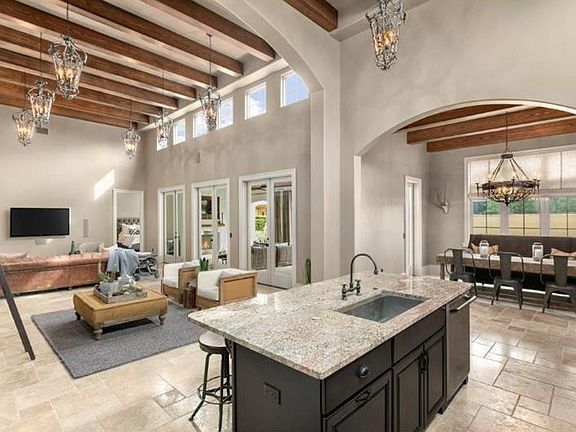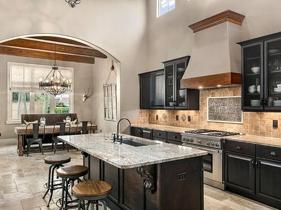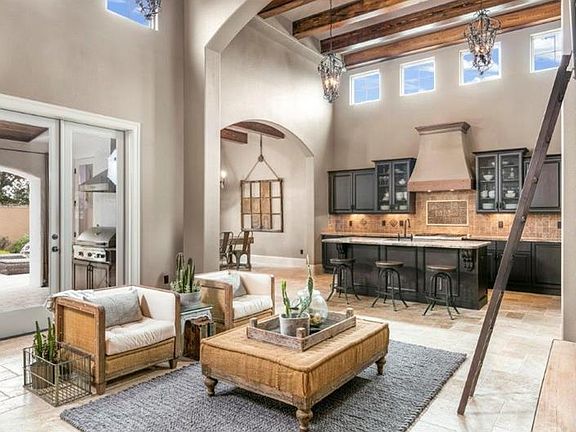 Beautifully custom crafted with Spanish influences of architecture, this tastefully appointed home is complete with decorative elements of style and beauty. Graceful curves and arches, niches and alcoves, cypress beams and herringbone ceilings that are complimented by stunning iron lighting fixtures will instantly delight your eyes. The private courtyard at the entry welcomes you into a tasteful and refined home with 4 bedrooms and 3.5 baths. Dramatic and appealing finishes such as high ceilings, cased windows and doors, crown molding in every room, 8" baseboards, 8' solid core doors, travertine floors and a kitchen complete with Viking and Thermador appliances await the most discerning buyer. The outdoor covered lanai with tongue and groove ceilings, fireplace and summer kitchen extend the interior living space into a relaxing open air oasis overlooking the private pool. Warmth and beauty exude throughout this home as old-world charm combines with contemporary styling to offer elegance and comfort. Desirable location, gated community, HOA dues that include lawn maintenance are features that only make this home more attractive and a rare find.
