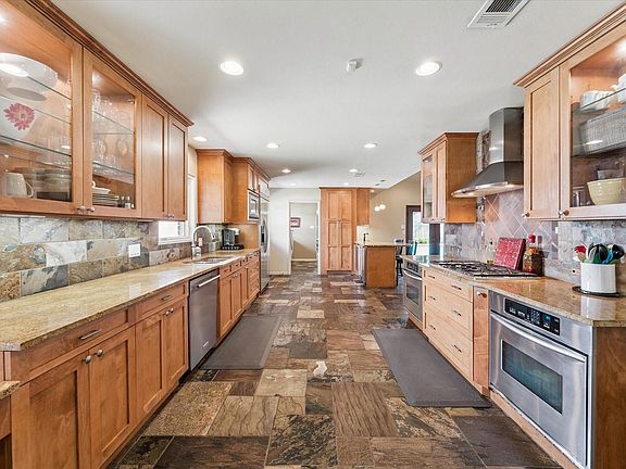 Sparkling poolGas log fireplaceHigh ceilingsBuilt-in grilling areaSlate floorsBuilt-in bookshelvesGranite counters