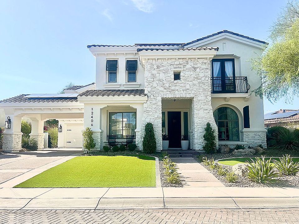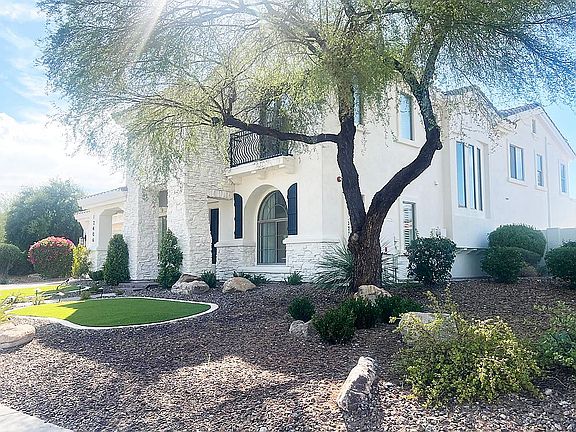 From the moment you arrive, this home impresses with its timeless architecture, classic tile roof, and well-kept landscaping that creates a warm, welcoming feel. Mature trees provide natural shade, while vibrant flowering bushes and desert-friendly plants add color and charm. Solar panels offer energy efficiency and cost savings year-round.