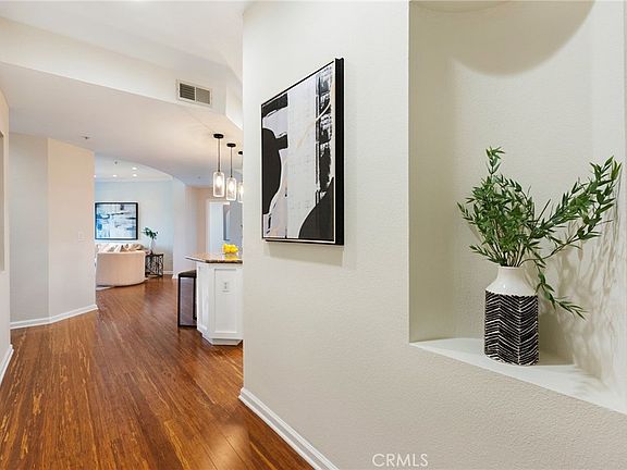 Welcome home to this updated 2 bedroom, 3 bathroom corner unit condo in prime Studio City! Sited at the rear of the building and overlooking a quiet, tree-lined neighborhood, this second story home features bamboo floors that lead from the entry hall into an open concept main living area illuminated by dimmable recessed lights. A warm fireplace sits alongside long, peaceful Northern views enjoyable from inside or out on the pleasant outdoor balcony. The kitchen is thoughtfully updated with stainless steel appliances, stone backsplash, and designer pendant lights over a peninsula style island. Each generously sized bedroom has its own ensuite private bathroom, while guests have easy access to a hall powder room. The primary suite is particularly well appointed with a large walk-in closet, wide dual sink vanity, and luxurious soaking tub next to a roomy standalone shower. An in-unit stacked washer and dryer makes laundry a breeze. It’s all climate controlled with newer central heat and air conditioning controlled by a Nest smart thermostat. The well maintained, freshly painted building features secured entry, an elevator, a gym, and a gated underground garage with two tandem parking spaces assigned to this unit. You’ll love the great location a stone’s throw from Coffee Fix and OyBar, and just a few blocks from Ventura Blvd. where you’ll find hot spots Granville, Carney’s, Salt & Straw, and so much more shopping and dining. Grocery options abound with Ralphs Fresh Fare, Erewhon, and Trader Joe’s all close by, or stop in to the nearby open air farmer’s market held every Sunday. LA living doesn’t get much better than this!
