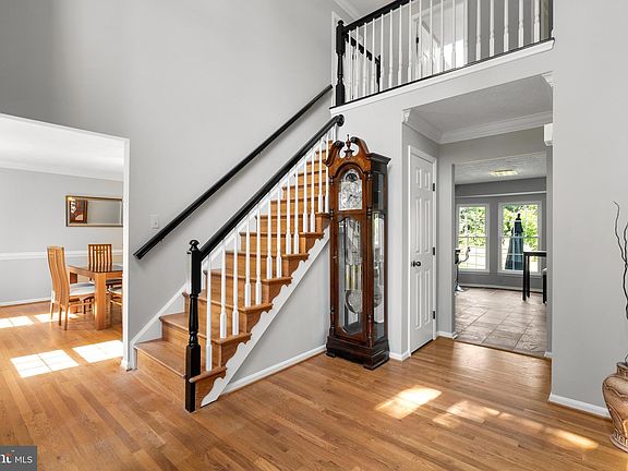 Located on a cul-de-sac street, this 4BR/3.5BA brick-front colonial offers the perfect blend of timeless design and thoughtful updates. A soaring two-story foyer welcomes you inside, with freshly painted interiors and hardwood floors flowing across the main level and upper level hall. The updated kitchen makes a sleek statement with black granite countertops, crisp white cabinetry, stainless steel appliances, slate tile flooring, and a stylish linear backsplash - complete with a breakfast bar and pendant lighting. The family room is warm and inviting, anchored by a fireplace with a modern surround, with a door leading to the rear deck and yard. Upstairs, the spacious primary suite offers two walk-in closets and a well-appointed en-suite bath with dual vanities, a soaking tub, and a stall shower. Three additional bedrooms—each generously proportioned—share a renovated hall bath adds a fresh, contemporary touch. The finished lower level provides valuable flex space for a home office, exercise room, or rec room. Step outside to a spacious rear deck and recently fenced yard—ideal for summer gatherings, playtime, or peaceful evenings outdoors. Major systems have been smartly updated, including the roof, HVAC, and A/C—all replaced within the last 5 years for added peace of mind. Enjoy easy access to shopping, dining, and the conveniences of Kentlands, Darnestown, and Downtown Crown, as well as quick connections to I-270, Route 28, and the ICC for easy commuting.