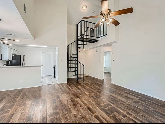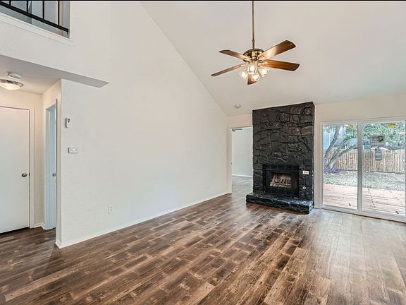 Welcome to 12408 Coronet St Unit B, a charming 3-bedroom, 2-bath retreat nestled under beautiful oak trees in a peaceful neighborhood. This home has been tastefully refreshed with new interior and exterior paint, updated countertops, modern light fixtures, and new sliding glass doors, providing a bright and inviting atmosphere. A spiral staircase leads to a versatile flex space, perfect for a home office or additional living area. Step outside to the deck through the new sliding doors, where you'll enjoy the shade of mature oak trees. With a 2-car garage and a location just 5 minutes from the Domain and within walking distance to Summit Elementary, this home offers both convenience and comfort. Don't miss this opportunity to own a well-loved home in the heart of Austin! *photos are virtually staged*
