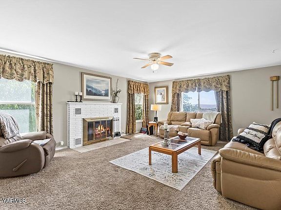 Nestled on 4.15 acres of serene land with 4.7 shares of Yakima Tieton irrigation, this charming three-bedroom, two-bath home offers a cozy, traditional feel. The spacious layout includes a large kitchen perfect for culinary enthusiasts and a separate dining room ideal for family gatherings. The property also boasts a substantial 30x40 shop heated by an oil furnace, perfect for any projects or storage needs. Inside, the living room and main bedroom feature oak flooring beneath the carpet, adding a touch of classic elegance. Additionally, the home includes a full-sized basement, offering ample storage space. Recent updates include new roof in 2022, new electrical panel as well as a new heat pump and HVAC in 2023. This property combines practicality with potential, ready to become your dream home.