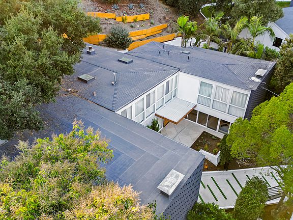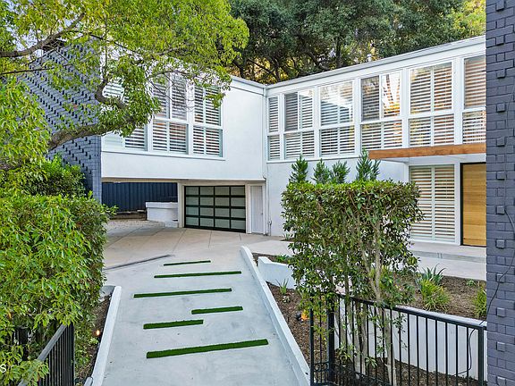 Architect John L. Pugsley created this wonderful contemporary style home in his Modernistic Style of architecture, that features the primary living area on the second level of the home, which allows for wonderful light filled rooms and striking vistas. Pugsley, who had worked with John Galbreth, Breo Freeman and Bennett and Bennett, designed several homes in the area. Every room in the house has been restored, with new custom surfaces and lighting fixtures. The result is a striking combination of the original 1962 design and the modern aesthitics and conveniences of today. The home includes a dramatic living/dining room with fireplace. The open floor plan flows from one room to the next, creating a more urban feel, yet the home is surrounded by lush gardens and numerous outdoor areas. The floor plan includes a family room adjacent to the kitchen, which features Viking appliances and custom surfaces. This wonderful space opens to the spa and pool area, as well. There are five bedroom and five bathrooms, in total. The generously sized primary suite has floor to ceiling windows and a view of the mountains. The bedrooms are all ensuite . All bathrooms have been updated. The first level bedroom suite opens to a glass enclosed patio that can be multi purpose with easy access to the pool and spa, as well. The outdoor entertaining areas include a pergola covered patio adjacent to the pool and spa. A motor port and two car garage is located near the entrance gate of the compound and has convenient access to the entry and down stairs bedroom suite. The property, sited on almost half an acre, is walled and gated creating a serene setting, yet is located only minutes to South Lake shopping and restaurants, The Langham Hotel, Polytechnic School, Caltech and The Huntington Library and Gardens. Encino Drive is an idyllic canyon setting located conveniently to all the community has to offer.