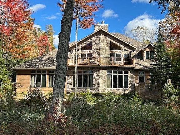 On Lake Shishebogama/Gunlock chain. Retired builders personal home. 4 car attached and 4 car detached garage, heated,work bench, ss sink, garage stairway to attic & cedar lined closet, 4'concrete crawl space, concrete drive. Open floor plan, ceramic tile, red oak hardwood flooring, butternut vaulted ceilings & wains coating. Two wet bars, granite counter tops throughout. Sub-zero separate refrigerator & freezer, Wolf 5 burner gas cook top, Wolf double ovens, warming oven, wine refrigerator, 60 pine cabinetry with frosted glass, Miele dishwasher, tiered granite counter top lunch area. Open great room with wood burning f/p, dining area with stain glass fixture. Master bath with Kohler shower massage system, jetted hot tub, heated floor. Family room with f/p & wet bar, atrium area leading to in floor hot tub. Tumbled stone deck. Second floor wet bar, 3 sided f/p leading to 9' X 29' deck overlooking the lake. Second floor kitchenette. Security System. Seller is Licensed Real Estate agent.