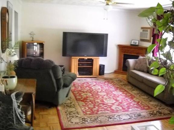 Highly desirable Middle Rd. Very pretty country setting. Deep,private fenced backyard goes into the woods. Large eat in kitchen,screened porch,gas fireplace,parquet floors, oversized garage. Lower level has fam rm, bdrm,bath and small kitchen. Nice for in-law or use kitchen for storage. High eff furnace 07. Very spacious for $120's. Close to Rush line.