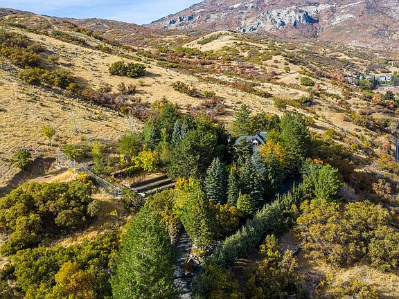 Own your own mountain on 24 acres in Alpine, Utah! Arriving at this evergreen oasis at the end of a pine tree-lined private drive, you will find this secluded retreat where you are alone with the wildlife. If you garden, you will enjoy a terraced garden space along the hillside that incorporates about 8,100 square feet. The home expands over 10,600 square feet (see 3D Video) on 4 levels with 4 (potentially 6) bedrooms and 3.5 baths, a formal dining room, and several family gathering rooms. The large master suite includes a sitting room, walk-in closet, and master bath. There are 2 spacious 2-car garages (4 car total) located up and down from each other and are insulated. A covered back patio is the ideal retreat setting to enjoy the fresh Alpine air. Enjoy a walk up to your backyard hillside beyond the garden to the top where you can look over Utah Valley and up at Lonepeak and the surrounding mountain ranges. Wildlife share in your solitude. Subdividing the property may be a complicated process if at all possible.