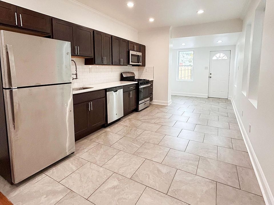 Fall in love with 1241 Orthodox Street! This beautifully renovated 3 bedroom, 2.5 bathroom home is now available. The home features solid hardwood floors, recessed lighting, crown and baseboard molding throughout. The kitchen offers quartz countertops, subway tile backsplash, and stainless steel appliances including refrigerator, gas stove, dishwasher, and built-in microwave. Head to the second floor where you will find a spacious and bright primary bedroom with en suite bathroom, two additional bedrooms, and a hallway bath. This home comes generously equipped with a powder room and laundry nook on the first floor, fenced-in backyard, and a full, finished basement. Newer doors, windows, water heater, and HVAC system. Conveniently located near major roadways and public transportation, this home provides an easy commute to all areas of the city.